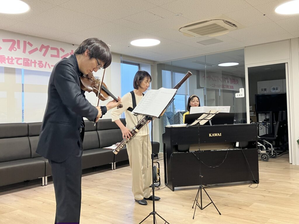 バイオリン奏者の矢野翔さん、ピアノ奏者の藤本史子さんの素晴らしい演奏が響き渡り、最後はアンコールで小林医師もバソンという珍しい楽器で一緒に演奏を行いました。