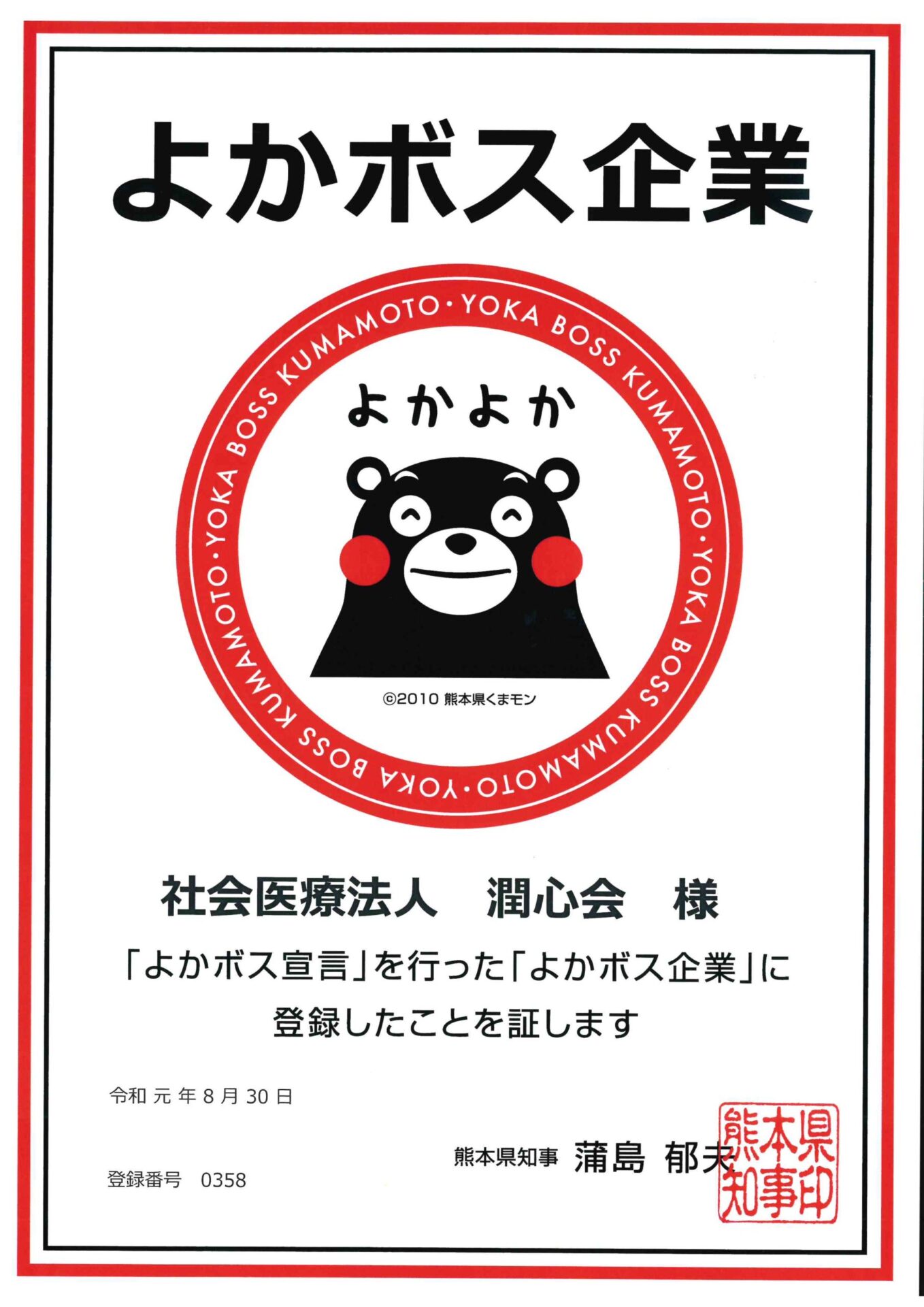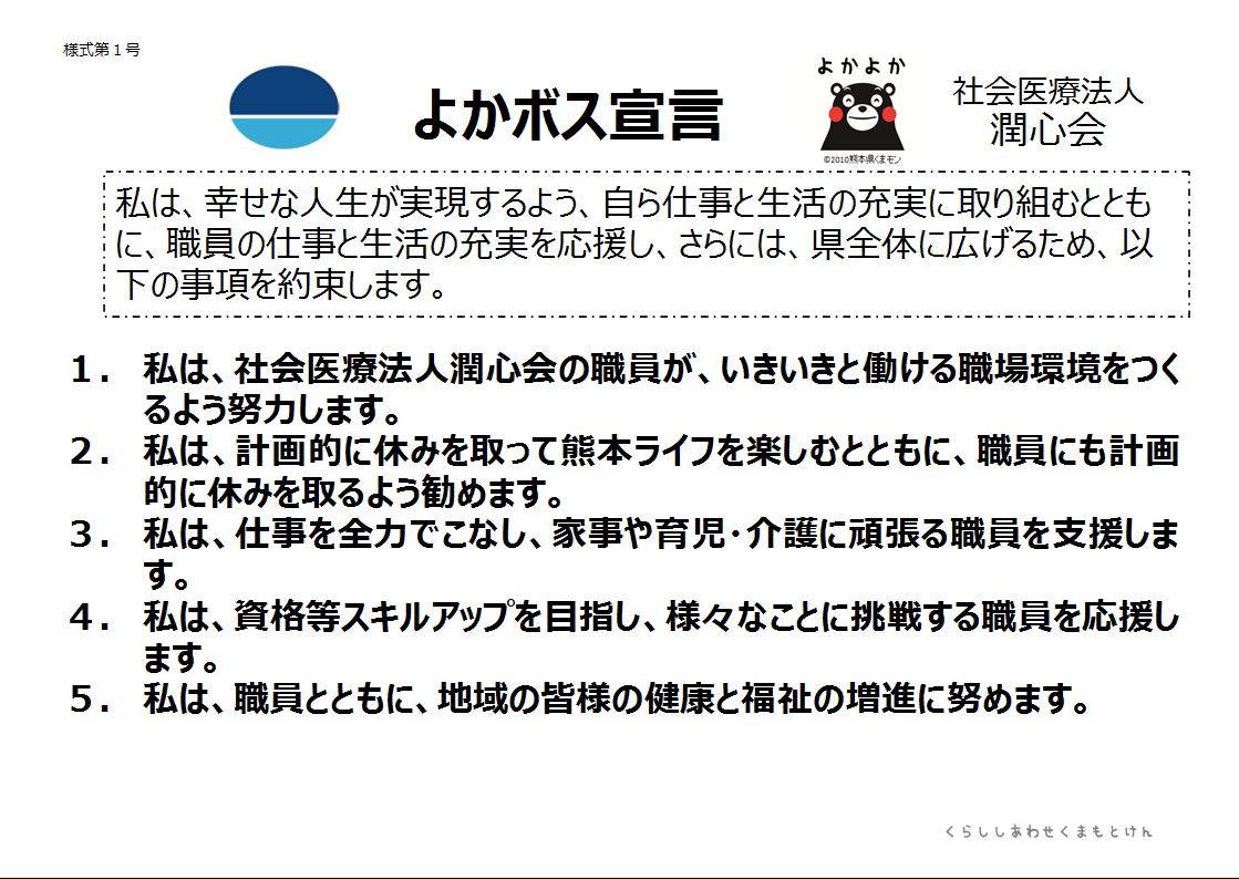 南野隆一理事長が「よかボス宣言」を行い、熊本県より認定されました。