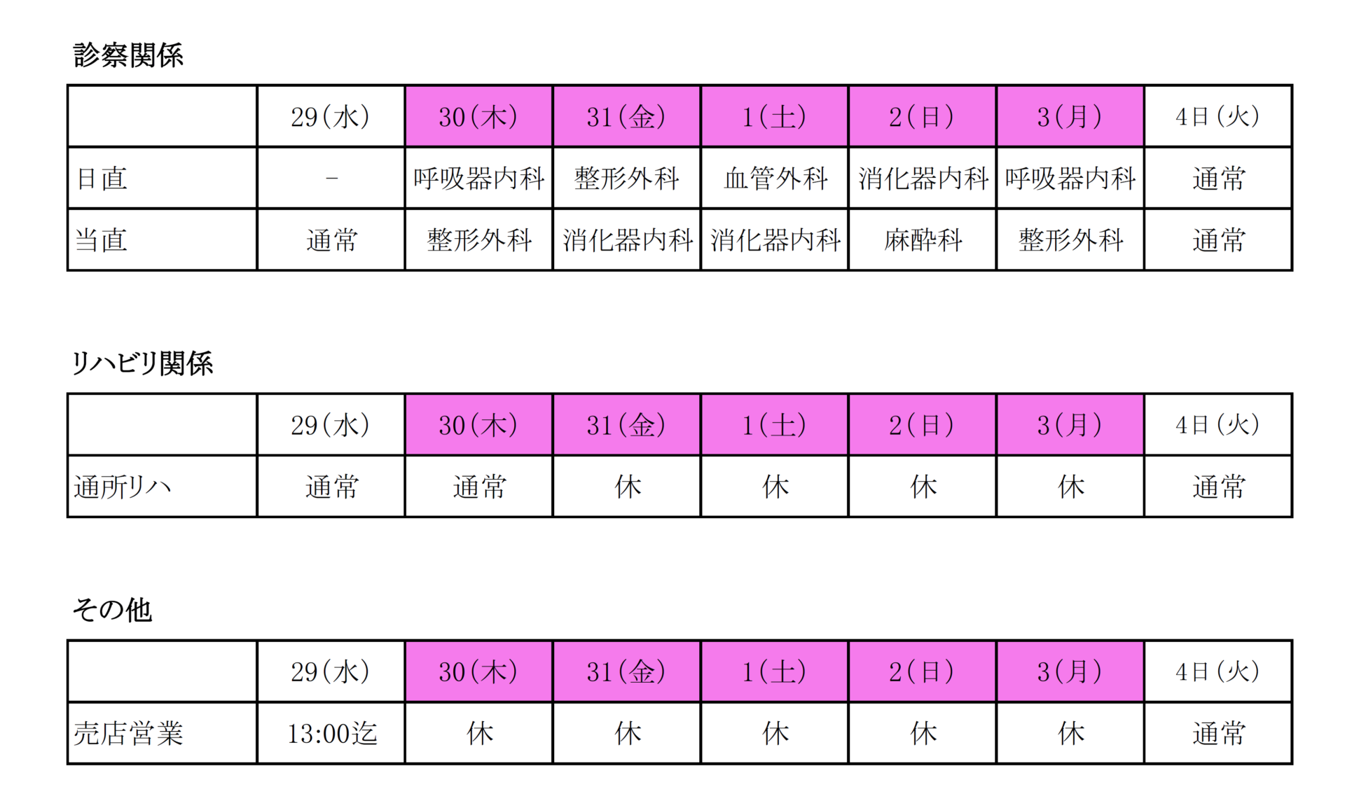 12月30日(木)から1月3日(月)までは年末年始体制となります。