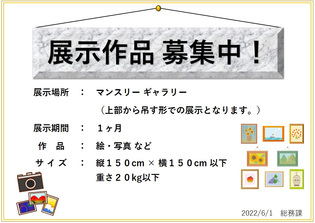 展示をご希望の方は 総務課 広報担当 までご連絡ください。