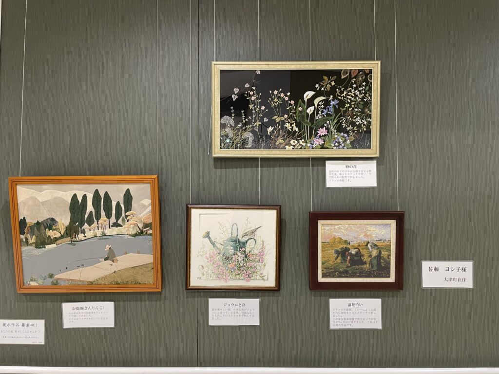 クロスステッチで表現された絵画やパッチワークで描かれた作品など、立体感のある素敵な作品を展示いただきました。