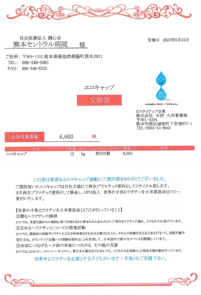 当院ではSDGsの取り組みの一環として、「エコキャップ」の回収をし、リサイクル業者へ持ち込み、「エコキャップ」を寄付するこで世界の子供達へのワクチン支援活動に取り組んでおります。