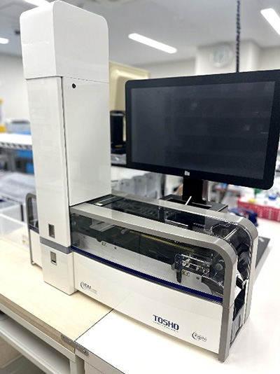オーダリングシステムにて医師が処方入力した処方に基づき服用方法、飲み合わせ、副作用の確認を行い、処方鑑査後、患者さん1人1人に適した服用方法にて調剤を行います。また、iPodを用いた最新の調剤支援システムを2016年に導入し、調剤過誤の防止に努めています。医師の指示または希望される方には、自動錠剤分包機で1包化(錠剤を1回服用分毎に包装)をしています。2023年からは一包化された薬剤を株式会社TOSHOの自動一包化鑑査システムMDMを利用し、鑑査補助のシステム化を行っています。また院外処方箋を希望される患者さんには、院外処方箋を発行しています。また、2021年度にはTABSORTを導入し、薬の仕分けに対する医療安全にも考慮した調剤を行っています。
